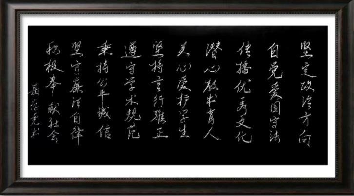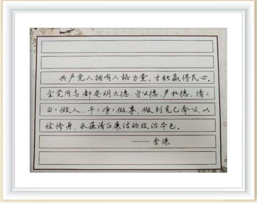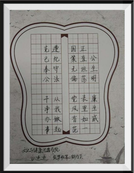 为深入推进“迎盛会、铸忠诚、强担当、创业绩”主题学习宣传教育实践活动,进一步加强廉洁文化建设,发挥廉洁文化的教育、示范、熏陶作用,促进教师提高道德修养和拒腐防变的能力,做到以德立身、以德立学、以德施教,马克思主义学院近日开展了“身先示范,廉洁从教”主题书画作品展活动。