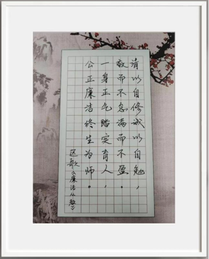 自活动开展以来,马克思主义学院思政课教师和筑梦班学员利用业余时间挥毫泼墨,积极创作,以笔为骨展示清风亮节,以墨为韵凸显如磐初心,体现了廉洁文化和书法艺术的有机结合。学院共收到书法、绘画等作品达共70多件,作品有廉诗、廉对、廉画、廉政格言警句,笔墨饱含感情,激浊扬清,令人警醒,催人奋进。现将获奖作品、特邀作品予以展示。