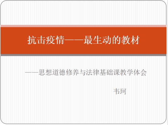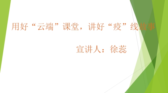 基础教研室韦珂老师、概论教研室赵丽清老师、形势政策教研室徐蕊老师分享了疫情期间线上教学的思考和实践,韦珂老师从混合教学的优势,混合式教学对教师提出的要求,以及如何在思修课程的设计中用好抗疫教材三方面谈了教学体会,赵丽清老师利用自己的专业特长,分享了如何在课程设计中发挥专业优势,将抗疫内容有机融入,徐蕊老师重点从线上平台的选择和具体的操作上分享了“云端”教学的思考与感悟。