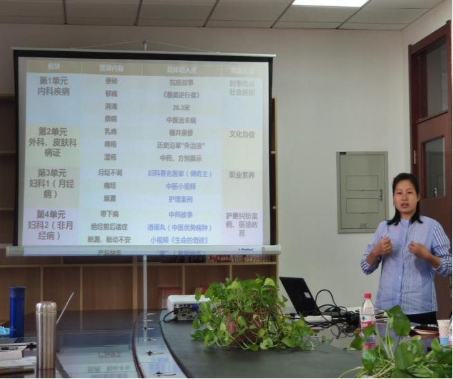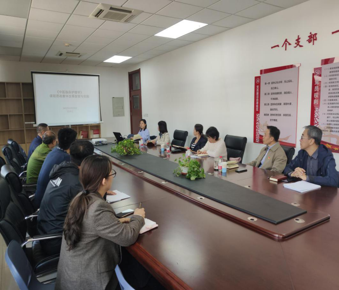 集体备课由纲要教研室主任陈宝主持。“筑梦班”学员阳伟红老师以“《中医临床护理学》课程思政教学改革探索与实践”为主题,结合自身对课程思政的学习与感悟,就如何将思政元素有机融合在专业课课堂及课程思政改革的具体目标作了主题汇报。随后,纲要教研室进行研讨交流,针对阳老师的课堂展示,结合自身授课经验,纷纷发表自己的看法与见解。