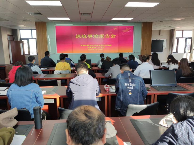 参观活动后,学院邀请天津中医药大学第一附属医院护理质量督导、天津市第二批援鄂医疗队成员、感控组成员陈迎护士长为四十三中师生、马克思主义学院教师、筑梦班学员作了抗疫精神专题讲座。陈迎护士长以亲切平和的叙事口吻,辅以抗疫历程中拍下的数组照片,将历时两个月的亲身经历向在场的师生娓娓道来,在场的很多师生深受感动,热泪盈眶。面对突如其来的疫情,面对复杂多变的困难,她坚信只要在党的坚强领导下就一定能取得这场伟大战斗的胜利。我校第一附属医院的医护人员在疫情暴发初期,白衣执甲、逆行出征,舍生忘死挽救生命,是最美的天使,是新时代最可爱的人。