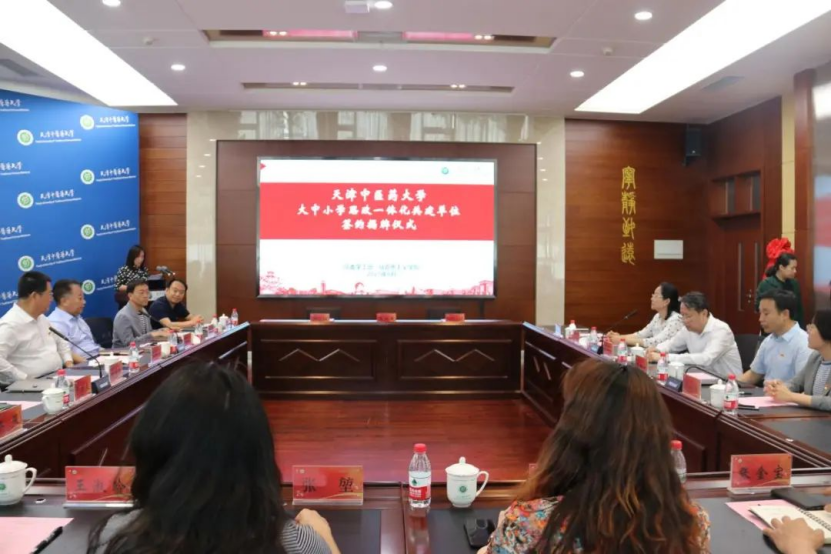 为深入贯彻习近平总书记关于教育的重要论述,深化新时代天津学校思想政治教育一体化建设,落实立德树人根本任务,构建全员、全过程、全方位的“大思政”育人格局,按照天津市教育两委《关于进一步完善大中小学思政一体化建设沟通机制》的有关文件要求,推进大中小学思政一体化建设,完善全市各中小学与各高校协同共建的长效机制,6月4日,学校在产学研基地会议室举行了“大中小学思政一体化合作共建”签约揭牌仪式。我校党委副书记刘革生、静海区教育局党委书记、局长孙开祥、静海区教育局副局长赵金水、党委学工部部长张岚、马克思主义学院书记曹永兴、院长郭小学、天津市四十三中学、天津市第二新华中学、静海区第四中学、独流中学、全运村小学、南开区汾水道小学等6所中小学校领导以及静海区教育局、教师发展中心、良王乡教育办等职能部门有关负责人参加本次会议。会议由党委学工部副部长东晓明主持。