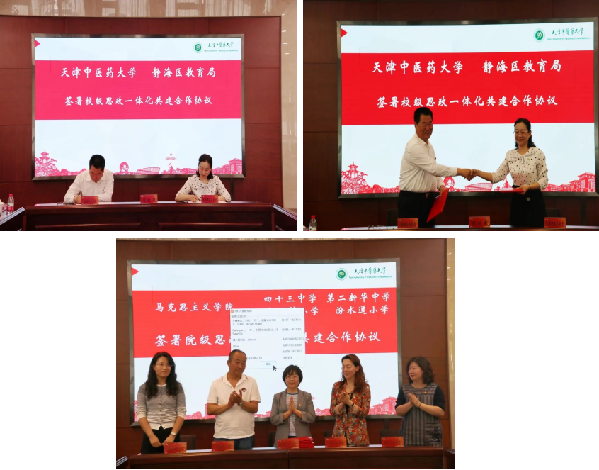 启动仪式上,静海区教育局与我校党委学工部共同签署校级共建单位协议,马克思主义学院与各中小学共同签署院级思政课一体化共建协议。