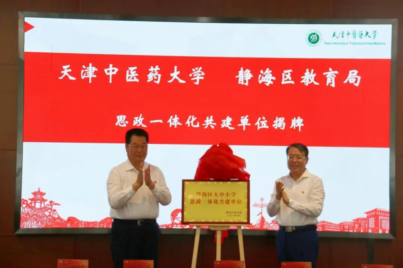 现场,静海区教育局党委书记、局长孙开祥与我校党委副书记刘革生共同为“大中小学思政一体化共建单位”揭牌
