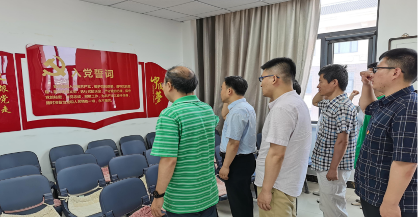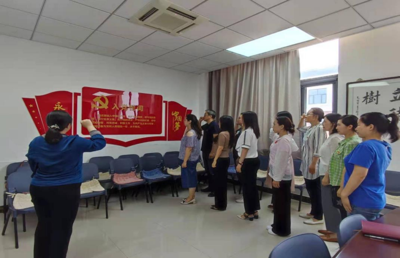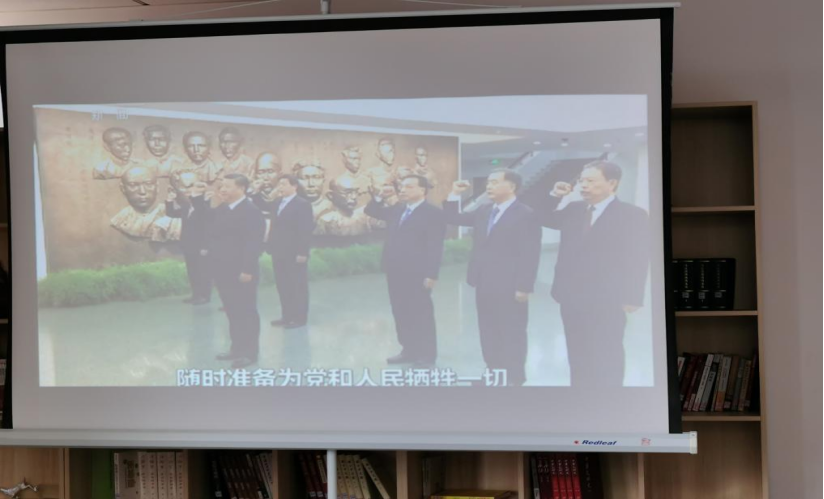 一段宣誓激荡入党初心。会上,党员们观看了十九大闭幕后习近平总书记带领中央政治局常委重温入党誓词的视频。随后,支部书记带领支部党员重温入党誓词,面向党旗庄严宣誓。“我志愿加入中国共产党,拥护党的纲领,遵守党的章程……随时准备为党和人民牺牲一切,永不叛党。”誓词字字铿锵,从宣读誓词的每一个字,都能感觉到那份坚定的信仰,好像再一次回到入党宣誓时的场景,激荡人心,催人奋进,坚定理想信念,终生不渝。
