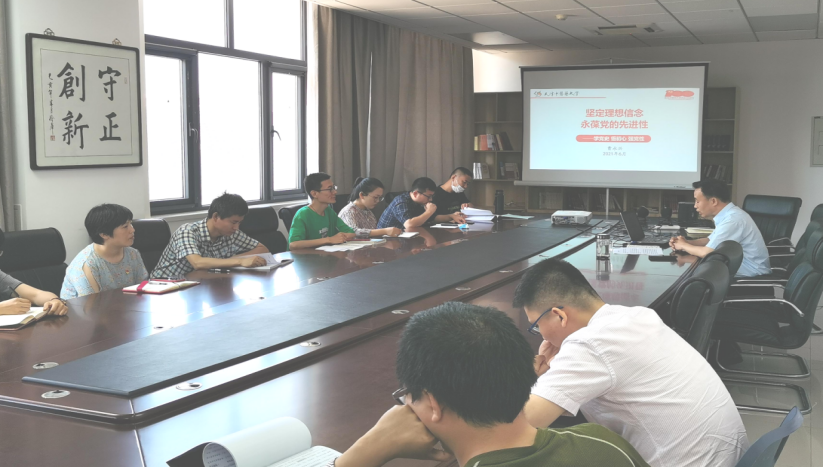 一堂党史课回溯辉煌百年。党总支书记曹永兴同志为原理党支部全体党员讲了题为《坚定理想信念,永葆党的先进性》的生动党课,曹书记围绕理想信念主题,以陈望道翻译《共产党宣言》、夏明翰绝命家书、湘江战役陈树湘断肠明志等感人至深的党史故事,为大家诠释了革命理想高于天,理想信念之火一经点燃就会产生巨大的精神力量。正是在理想信念的火炬下,我们取得了今天彪炳史册的成就。党总支副书记王晨艳同志为概论支部党员带来了《学习延安整风传承延安精神》的专题党课,共同回顾了延安整风运动的时代背景及发展历程,深刻分析延安整风运动的历史作用。在新时代的征程中,以延安精神不断激励前行,始终坚持理论联系实际、密切联系群众、批评与自我批评的工作作风,坚持正确的政治路线,紧密团结在以习近平同志为核心的党中央周围,坚持真理,实事求是。概论支部书记刘金鹏同志以《近代李大钊》为题,介绍了青年李大钊探索救国救民之路的奋斗历程,不惜为党和人民牺牲一切,并带领全体党员一同欣赏李大钊诗词三首,进一步坚定了党员的理想信念。“筑梦班”党支部书记韩晓捷以《强起来:接续奋斗的新时代》为题,回顾党的历史,让我们更清醒地认识到中国共产党领导是中国特色社会主义的最本质特征,中国特色社会主义制度是民族复兴的根本保证,中国特色社会主义道路是指引中国人民创造美好生活的必由之路。