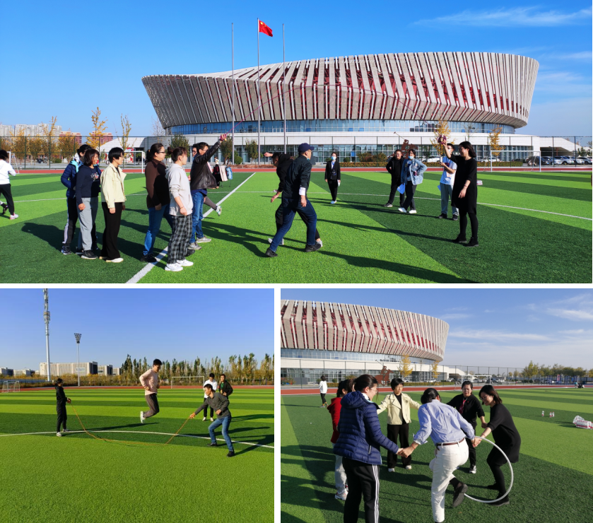 团结协助齐努力,趣味运动展魅力。此次趣味运动会共设有胯下传球、跳绳、呼啦圈不落地、飞翔的羽毛球等团体项目和个人项目,既有体力上面的角逐,也有团结与协作的完美比拼,从而激发了教师参与度。老师们一改往日的思想碰撞、交流互鉴,以趣味之名,畅享运动快乐。