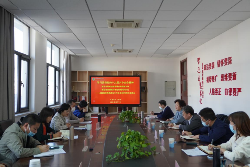 在全国高校思想政治工作会议召开五周年之际,为进一步贯彻落实习近平总书记关于思想政治工作的重要讲话精神,学习贯彻党的十九届六中全会精神,12月7日,马克思主义学院组织召开思想政治理论课改革创新座谈会。校党委书记刘革生、宣传部部长崔强、教务处处长阚湘苓、校团委书记张晶出席,马克思主义学院院长郭小学、副书记王晨艳及全体教职工参加。