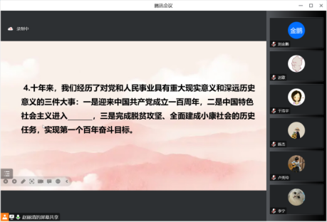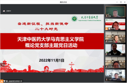 乔显喆、张钰颖两位党员分别领学党的二十大报告原文和习近平总书记关于中医药的重要论述,王军杰教授做《党的二十大精神怎样融入思政课》主题讲座,并即时进行党的二十大主题应知应会知识竞赛,全体党员踊跃抢答。