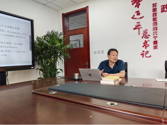 为深入开展学习贯彻习近平新时代中国特色社会主义思想主题教育,提高思政课教师马克思主义经典原著理论素养,推动理论水平建设和教学能力提升,5月30日,概论党支部开展“读原文原著”系列活动。支部书记赵丽清主持,党支部全体党员参会。