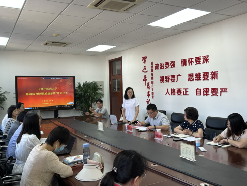 张志国处长和冯莉部长分别讲话。张志国处长强调,课程思政的基础是教师的文化底蕴,落实“第二个结合”的要求,要在夯实专业的基础上深刻了解和探索中华优秀传统文化,结合专业实际深入思考和解决“培养什么人、为谁培养人、怎样培养人”的问题,将思政内容润物无声地融入专业课程中,避免“两张皮”和“喊口号”。冯莉部长首先带领大家回顾了党委相关文件,介绍了筑梦班建设发展目标以及管理文件修订等方面的内容,她指出前三届筑梦班成果颇丰,社会对筑梦班的认可度与知名度大大增强,这为筑梦班今后的建设和学员的培养提出更高要求,新学员要牢记使命,提高自身技能水平,丰富课程思政成果,为学校大思政建设贡献力量。