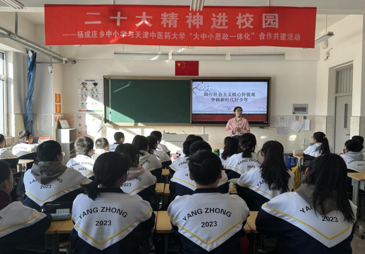 为深入贯彻落实党的二十大精神,落实习近平总书记在学校思政课教师座谈会上的重要讲话精神,进一步促进大中小思政课一体化工作落实落细,2023年11月10日上午,学院党总支副书记王晨艳带领学院骨干教师赴杨成庄中学与天津市静海区杨成庄乡教育服务中心下属的中、小学开展大中小思政课一体化共建活动。