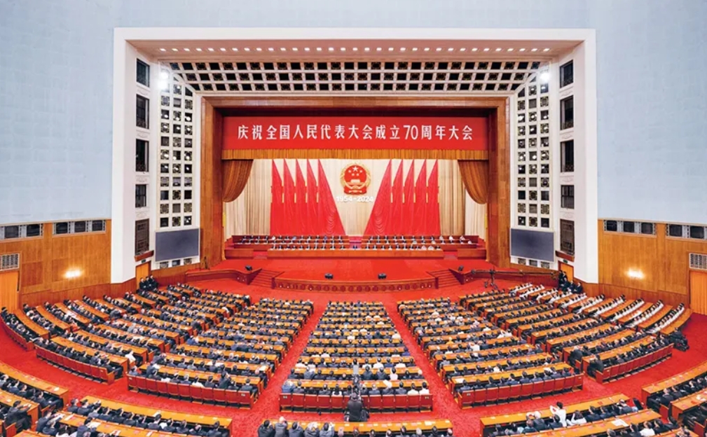 2024年9月14日上午,中共中央、全国人大常委会在北京人民大会堂隆重举行庆祝全国人民代表大会成立70周年大会。 新华社记者 翟健岚/摄