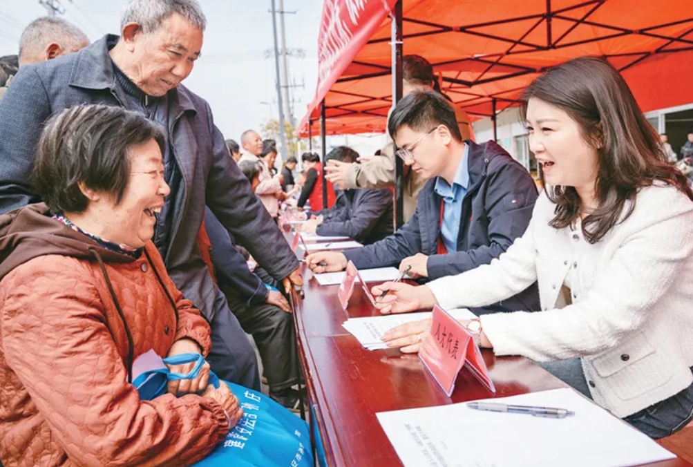 2024年4月11日,江苏省海安市孙庄街道人大工委组织市人大代表、街道议政代表走进当地集市,零距离接待选民群众,讲解政策法规、派发宣传资料,协调解决他们在生产生活中的实际困难。图为当日,人大代表在集市上面对面倾听群众的意见和建议。 人民图片 翟慧勇/摄