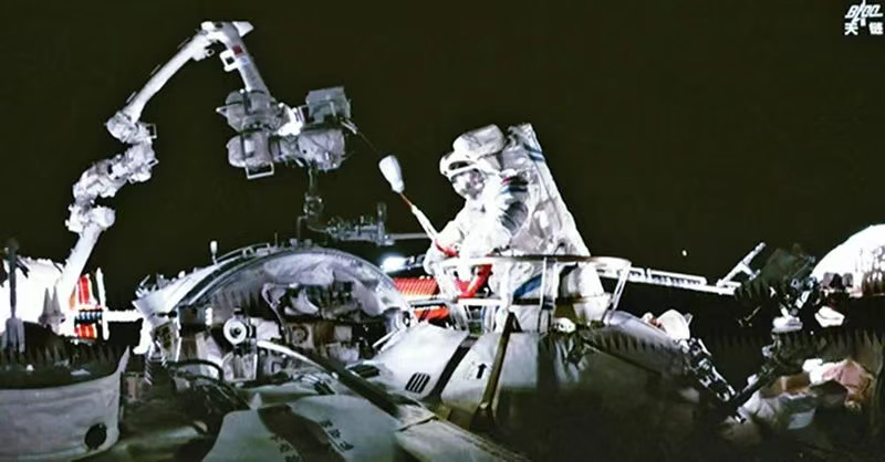 “十四五”规划《纲要》提出,培育先进制造业集群,推动集成电路、航空航天、船舶与海洋工程装备、机器人、先进轨道交通装备、先进电力装备、工程机械、高端数控机床、医药及医疗设备等产业创新发展。2025年5月22日,神舟二十号航天员乘组圆满完成第一次出舱活动。这是进入空间站应用与发展阶段以来,航天员首次通过天和核心舱节点舱出舱,航天员出舱与货物出舱任务首次关联耦合实施。图为当日在北京航天飞行控制中心屏幕上拍摄的神舟二十号航天员陈冬出舱的画面(视频截图)。 新华社记者 厉彦辰/摄