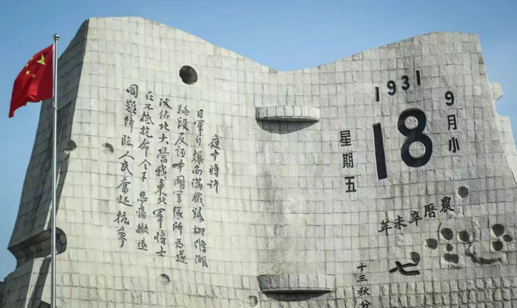 2021年9月18日拍摄的辽宁省沈阳市“九一八”历史博物馆的残历碑。新华社记者 潘昱龙 摄