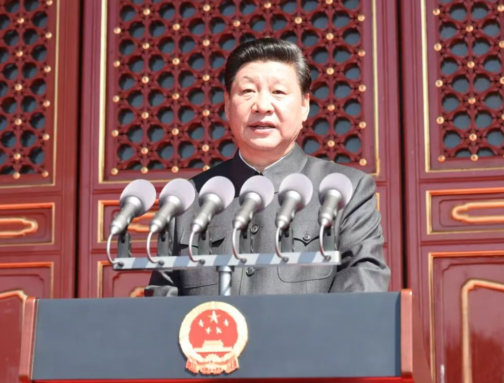 2015年9月3日,纪念中国人民抗日战争暨世界反法西斯战争胜利70周年大会在北京天安门广场隆重举行。这是中共中央总书记、国家主席、中央军委主席习近平在大会上发表重要讲话。新华社记者 谢环驰 摄