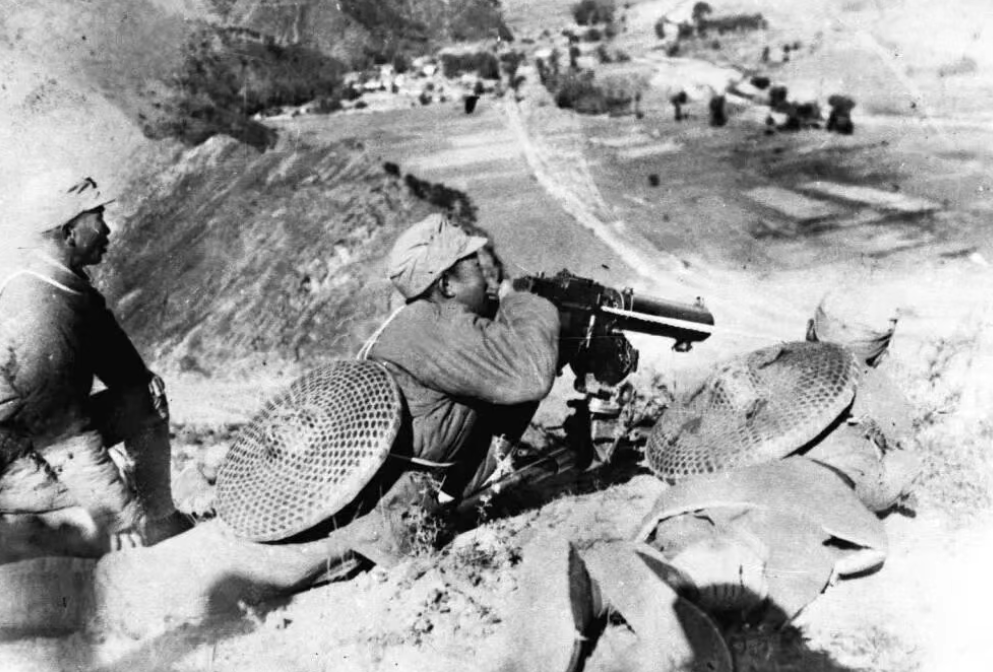 1937年9月25日,中国共产党领导的人民军队取得抗战以来第一个重要胜利——平型关大捷。图为平型关战斗中,一一五师某部的机枪阵地。新华社发(苏静 摄)