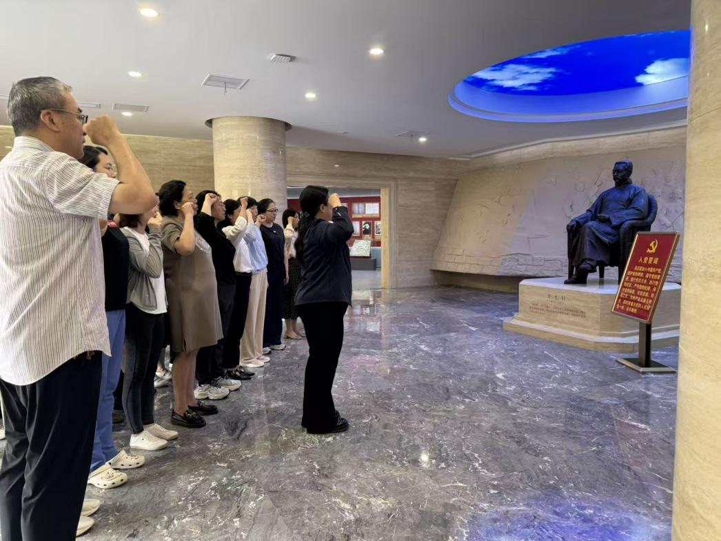 在李大钊烈士塑像前,马克思主义学院党总支书记韩晓捷带领全体党员重温入党誓词,牢记初心使命。