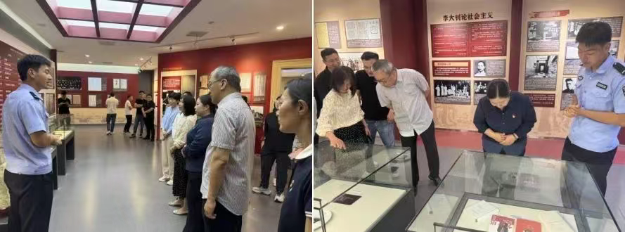 当日,在天津警察学院思政部李悦副教授的带领下,老师们怀着无比崇敬之情踏入李大钊烈士纪念室。在讲解员的深情讲述下,老师们通过一幅幅生动的历史图片、一件件珍贵的历史文物和一段段翔实的文字资料,深入了解李大钊同志的成长经历、革命事迹和历史贡献,切身感悟他的革命思想、崇高精神和伟大人格。参观过程中,老师们不时驻足凝视,相互交流讨论,深刻领悟“大钊精神”的丰富内涵。