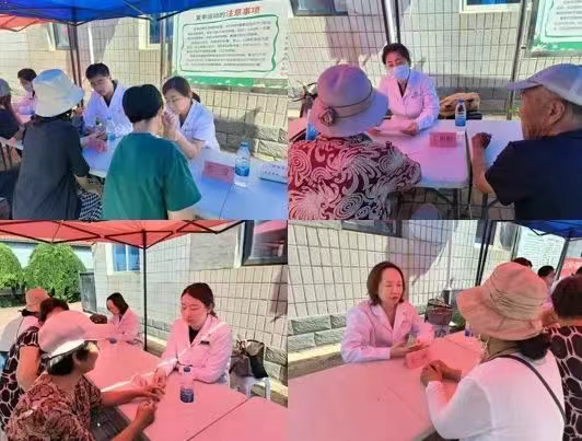 活动伊始,团队成员来到蓟州区东二营镇卫生院。在我校驻东二营镇驻村第一书记张砚、任瑞宾两位领导大力支持下,马克思主义学院筑梦班党支部“强国行”专项行动团队成员、天津中医药大学第一附属医院丁彬彬、张文涛、苏畅、王琳、包安五位专家组成的义诊团队,冒着炎炎酷暑,为当地群众义诊。专家精湛的医术、耐心的解答赢得了当地群众的交口称赞。