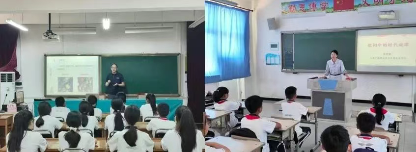 座谈结束后,我院“强国行”专项行动团队成员中医学院教师高利东、思政课教师张舒瑜前往东二营镇中小学开展现场教学。两位老师结合中医药文化中的家国情怀与责任担当,用生动案例和趣味互动,点燃中小学生心中的爱国热情,引导他们树立正确的价值观。